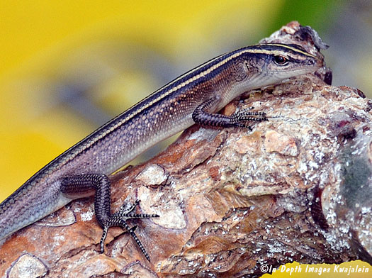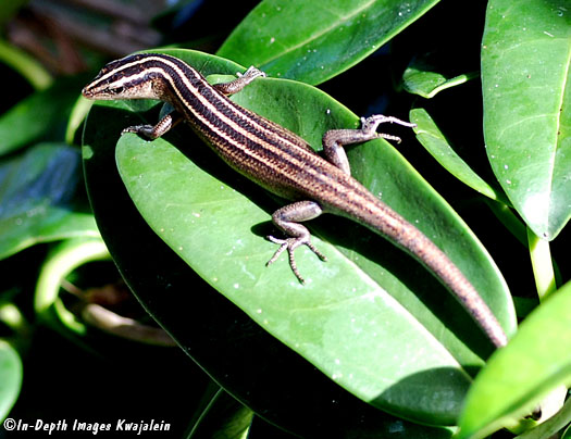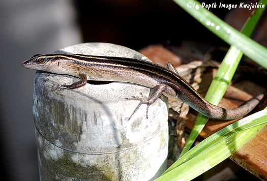 This skink is common in vegetation and outside buildings on Kwajalein.