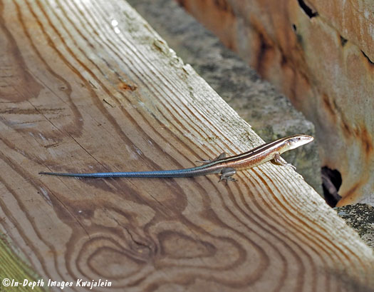 This skink is common in vegetation and outside buildings on Kwajalein.