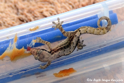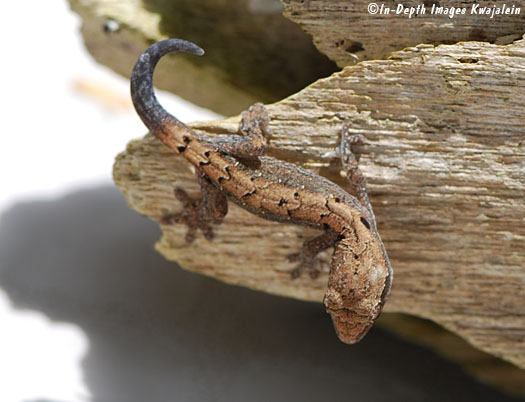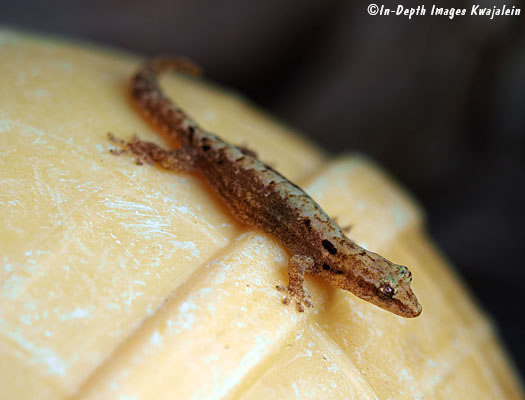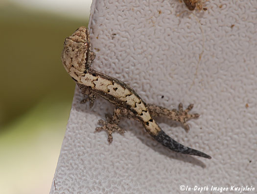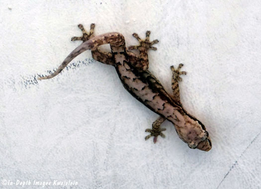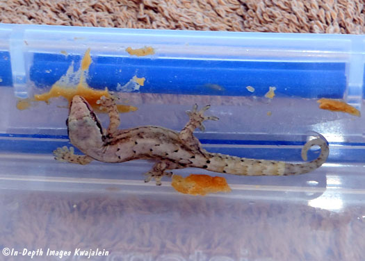 This gecko is common at Kwajalein, usually outside feeding on insects and the nectar of flowers. An interesting feature of their biology is that they are parthenogenic; that is, there are no males. According to Wikipedia, "Females engage in pseudocopulation, stimulating both to produce viable eggs."