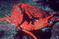 This page links to photos of Brachyuran crabs we saw in Hawaii in the late 1970s and early 1980s. Much of crab taxonomy depends upon close examination of the numerous appendages, something that is not easily done through in situ photographs of the living animal. We welcome corrections or suggestions at uwkwaj@yahoo.com. We did not focus on crab photography during our time in Hawaii, and photos of crabs were usually taken sporadically to use up the end of a roll of film, and we were limited in size of subject by which extension tube we had mounted on the Nikonos camera. Consequently, coverage is rather skimpy, and there are many more species in the area than we have figured on this site.